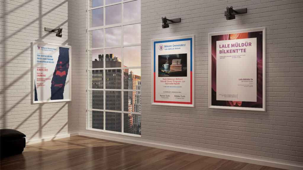 Bilkent Üniversitesi Türk Edebiyatı ve Tarih Bölümlerinin kullanması için poster, etkinlik takvimi ve benzeri dijital tasarım ürünlerini hazırladık.
